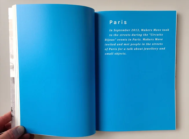The book ‘Makers Move Matter’ is a documentation of our work since 2012, and some of the encounters we had with people on the road and their stories. Four writers have contributed their ideas about material culture, the relevance and importance of tangible objects and jewellery as a ‘dynamic’ medium, and the human and powerful qualities of making things.